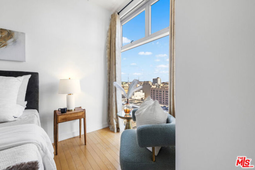 MOTIVATED SELLER!! Sky Lofts is at the epicenter of DTLA in the South Park District. Perched high above the city on the 15th floor at 801 S Grand Ave, this 2-bedroom, 2-bathroom, 1,220 square foot loft-style condo offers a seamless blend of modern finishes, open-concept living, and exciting skyline views. This south facing unit has massive windows, letting natural light spill in to create an ideal backdrop for both day-to-day living and evening entertaining. 10 foot high ceilings add to the loft style vibes. The kitchen is open to the living room with a breakfast bar/island with plenty of storage and seating capability as well as a dining area between the kitchen and living room. Off of the living room there is primary bedroom suite with a spacious ensuite bathroom that includes a double vanity, a large tub and separate shower. Attached to the primary bathroom is a large walk-in closet. The 2nd bedroom, off the main entryway, is perfect as an office or guest bedroom and situated next to the 2nd full bathroom. There are light hardwood floors throughout the unit giving it a modern and bright tone. In addition, there is an in unit washer and dryer closet and central heat and air conditioning. The list of building amenities are impressive - a premium updated gym, a movie/media room with comfy theatre style seating, a clubhouse/entertainment room with a full kitchen that can be booked for events and a 24 hour security desk in the lobby. The unit includes two side by side parking spaces in the underground garage. There is a separate garage on site with ample visitor parking for guests. Nightlife, dining, entertainment and shopping are minutes away. Notable restaurants nearby like Bottega Louie, Water Grill, 71 Above and LeGrand. Across the street from Whole Foods and within 5 blocks from Crypto.com arena. Easy access to the USC campus and USC Keck. If you're looking for a downtown city lifestyle with a walkable neighborhood and vibrant culture, then 801 Grand Ave is the place to be.
