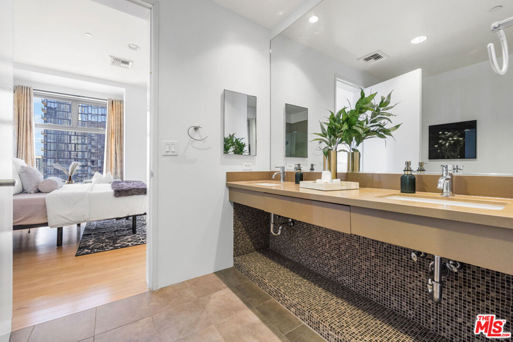 THE BEST PRICED UNIT CURRENTLY LISTED IN SKY LOFTS! PRICE IMPROVEMENT - $40,000! MOTIVATED SELLER! Sky Lofts is at the epicenter of DTLA in the South Park District. Perched high above the city on the 15th floor at 801 S Grand Ave, this 2-bedroom, 2-bathroom, 1,220 square foot loft-style condo offers a seamless blend of modern finishes, open-concept living, and exciting skyline views. This south facing unit has massive windows, letting natural light spill in to create an ideal backdrop for both day-to-day living and evening entertaining. 10 foot high ceilings add to the loft style vibes. The kitchen is open to the living room with a breakfast bar/island with plenty of storage and seating capability as well as a dining area between the kitchen and living room. Off of the living room there is primary bedroom suite with a spacious ensuite bathroom that includes a double vanity, a large tub and separate shower. Attached to the primary bathroom is a large walk-in closet. The 2nd bedroom, off the main entryway, is perfect as an office or guest bedroom and situated next to the 2nd full bathroom. There are light hardwood floors throughout the unit giving it a modern and bright tone. In addition, there is an in unit washer and dryer closet and central heat and air conditioning. The list of building amenities are impressive - a premium updated gym, a movie/media room with comfy theatre style seating, a clubhouse/entertainment room with a full kitchen that can be booked for events and a 24 hour security desk in the lobby. The unit includes two side by side parking spaces in the underground garage. There is a separate garage on site with ample visitor parking for guests. Nightlife, dining, entertainment and shopping are minutes away. Notable restaurants nearby like Bottega Louie, Water Grill, 71 Above and LeGrand. Across the street from Whole Foods and within 5 blocks from Crypto.com arena. Easy access to the USC campus and USC Keck. If you're looking for a downtown city lifestyle with a walkable neighborhood and vibrant culture, then 801 Grand Ave is the place to be.