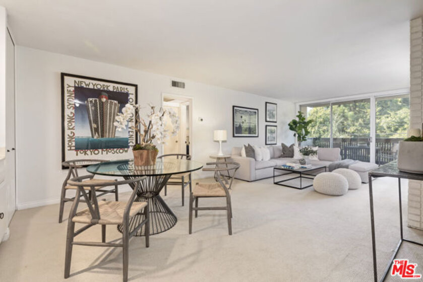 Brentwood Sycamore Condominiums - An exceptional opportunity to own in the heart of Brentwood, with dining, shopping, and everyday conveniences just steps away. This north-facing 1-bedroom, 1-bath residence offers 1,054 square feet of living space and a spacious covered balcony. A formal entry opens to a bright and inviting living room featuring a fireplace, wet bar, and built-in cabinetry, flowing seamlessly into a formal dining area. The galley-style kitchen includes ample cabinet space, built-in and freestanding appliances, and a pantry. The generously sized bedroom features a walk-in closet, and the bathroom offers a tub/shower combination. North-facing exposures from the bedroom, living room, dining area, and balcony provide abundant natural light throughout the day. Community laundry is conveniently located just down the hall. The building features a stylish two-story lobby and resort-style amenities, including a pool, spa, outdoor patio, fully equipped gym, sauna, and recreation room. HOA includes Cable, Internet, Water, HBO, and Showtime. Ideally located near San Vicente Boulevard's popular restaurants and coffee shops, the Brentwood Sunday Farmers Market, Whole Foods, and more. Seller intends to complete a 1031 tax-deferred exchange at no cost to Buyer.
