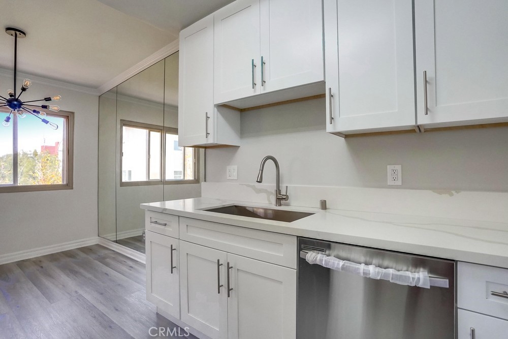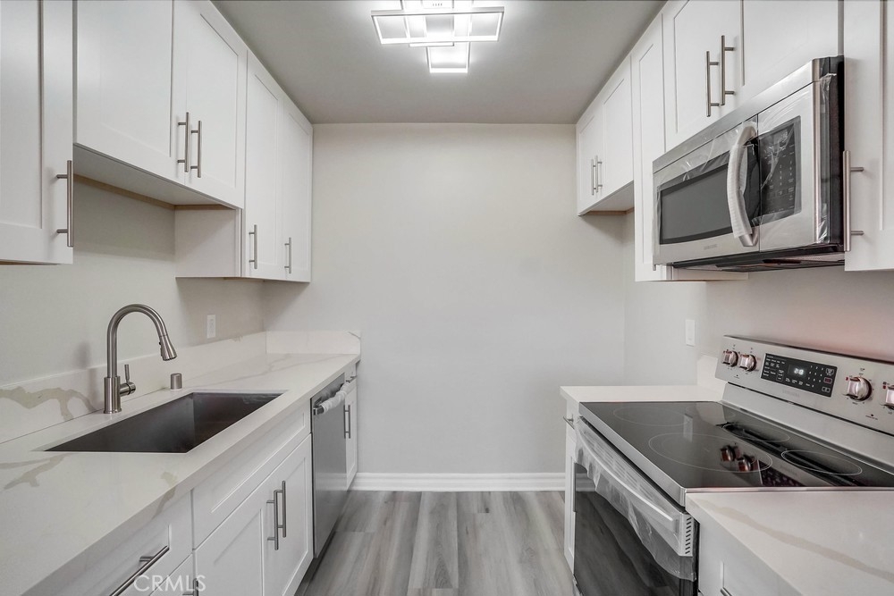 COMPLETELY REMODELED MODERN CONDO on a quiet street in the heart of Westchester. Located on the north side of the complex, it is completely and tastefully remodeled utilizing modern design elements, yet feels warm and cozy. 1 bed/1 bath top open floor plan, bright unit with all of natural light and a nice view. EVERYTHING IS BRAND NEW! The kitchen is a chef's paradise with brand new cabinets, calacatta countertops, and brand new stainless steel appliances: dishwasher, built-in microwave, and electric range with convection oven. Brand new waterproof luxury vinyl plank floors seamlessly carry you from room to room, embracing an open concept layout. Crown molding in the living room, dining room, and hallways. The unit boasts new light fixtures and hardware. A good-sized bedroom has a large closet and fits a king-size bed. The complex has been updated with new soundproof windows and doors. Secure entry and assigned parking space. Two large storage cabinets in the garage. Immaculate, safe gated, resort-like well-maintained complex with a community pool, gym, and a recreation room. Walk to all the nearby shops and restaurants. Minutes to the Silicon Beach Tech Hub, the new NFL SoFi Stadium, and the upcoming new Metro Line LAX to DTLA. Easy access to 405, 90 & 10 Freeways. This is an incredible opportunity to own this beautiful condo for the same monthly payment as renting an apartment. Must see, before it goes!