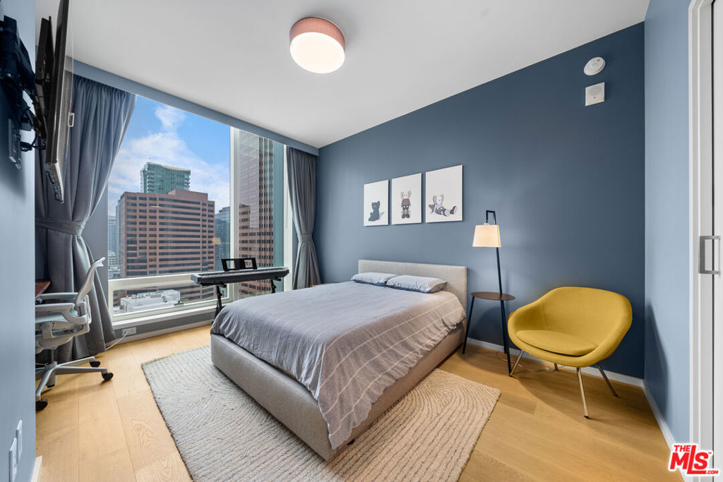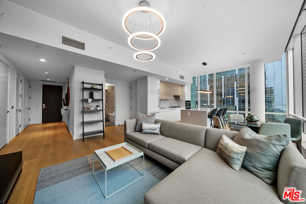 Experience the perfect blend of sophistication and modern luxury at Metropolis II, one of Downtown LA's premier high-rise communities. This stylish 2-bedroom, 2-bath residence showcases floor-to-ceiling windows, wide-plank wood flooring, and breathtaking panoramic views of the iconic city skyline. Designed for both comfort and entertaining, the open-concept layout flows effortlessly from the living and dining areas to the chef-inspired kitchen. Outfitted with top-of-the-line Miele appliances, designer finishes, and a generous center island with a built-in beverage chiller, the kitchen is the ideal space to cook, host, and createall while enjoying the dazzling city lights. Adding to its exclusivity, this home is located on one of only three levels at Metropolis II that boast exceptionally high ceilings, enhancing the sense of space and light. The sun-drenched primary suite offers a tranquil retreat with a spa-like bath and expansive closet, while the second bedroom provides flexibility for guests, a home office, or creative studio.As a resident of Metropolis, you'll enjoy an impressive collection of amenities including a resort-style pool, state-of-the-art fitness center, business center, private screening room, 24-hour concierge, and a dedicated dog park. Perfectly situated in the heart of DTLA, you're moments from world-class dining, shopping, cultural landmarks, and even a Starbucks conveniently located at the neighboring Indigo Hotel. Don't miss your chance to live in one of Los Angeles' most sought-after addresses, where every day feels like a luxury escape.