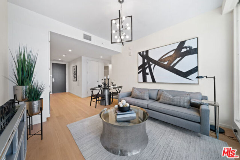 Live elevated at Metropolis in vibrant South Park. Residence 2903 is a modern home offering clean lines and panoramic city views. A generous open concept 1BR/1BA with a grand living area and spectacular views. The residence features integrated Miele appliances, Caesarstone countertops, custom Italian cabinetry with LED lighting and a Nest Learning Thermostat. Bath includes a custom vanity with Hansgrohe and Duravit fixtures. Floor-to-ceiling glass fills the home with natural light, while the minimalist kitchen features integrated appliances and warm wood cabinetry. Open living and dining areas create effortless flow, forming a refined urban retreat above the city. Metropolis spans an entire city block and offers 40,000+ SF of resort-style amenities, including the Met Nine clubhouse, junior Olympic-sized pool and spa, Skypark with fire pit, fitness center with TechnoGym equipment, yoga studios, screening room, business center, dog park, and 24/7 lobby ambassador service. Moments from Crypto.com Arena, L.A. LIVE, USC, and Dodger Stadium. One-bedroom incentives up to $30,000 available. Portfolio financing available.
