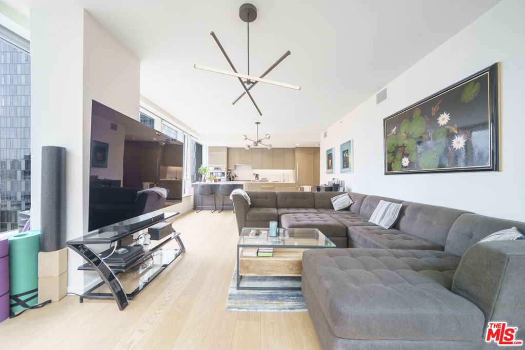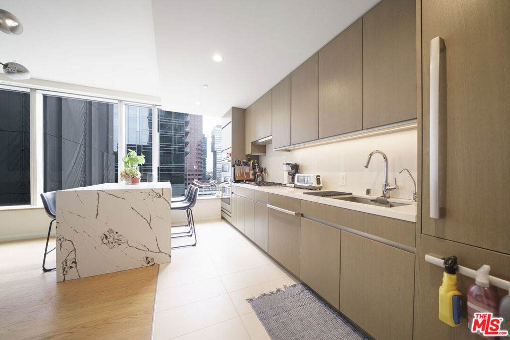 Welcome to |Unit #709 |at |Metropolis Tower 1|, the largest one-bedroom floor plan currently available, offering a rare blend of space, style, and flexibility in one of Los Angeles' most sought-after addresses. This expansive 1BD/1.5BA residence with a dedicated office buildout is the ideal live/work retreat in the sky, perfect for those seeking refined urban living or a pied-a-terre in a world-class city. Step inside to discover a thoughtfully designed open layout, featuring large, expansive windows that frame vibrant city views while filling the home with natural light. The sleek kitchen is ideal for both everyday living and entertaining, appointed with Caesarstone countertops, custom European cabinetry with under-cabinet LED lighting, integrated appliances, and an added counter bar for casual dining or gatherings. The spacious bedroom suite offers comfort and privacy, complete with ample closet space and a spa-inspired ensuite bath, while the additional half bath and office buildout add to the home's versatility and appeal. Elevated Lifestyle & Exceptional Amenities Metropolis Tower 1 redefines luxury urban living with exclusive access to a 41,000 sq ft indoor/outdoor clubhouse oasis, featuring: Resort-style pool with cabanas and BBQ areas. State-of-the-art fitness center with steam room, yoga studio, and garden. Private movie theater and residents' dining lounge with catering pantry. Business and conference center, TV and entertainment room. Dog park with bathing station. A Grand 35,000 sq ft motor court and 24-hour attended lobby for security and convenience await your arrival home. Prime DTLA Location Situated in the vibrant Social District of Downtown Los Angeles, Metropolis Tower 1 places you steps from public transportation, the Financial District, USC, Crypto.com Arena, L.A. LIVE, the Convention Center, FIDM, Grand Hope Park, and some of the city's best dining and entertainment options. Looking ahead, Los Angeles will host the FIFA World Cup in 2026 and the Olympics in 2028, bringing global energy, excitement, and investment to DTLA, making this location even more desirable for buyers and investors alike. Unit #709 at Metropolis Tower 1 offers a unique opportunity to own a luxurious, secure, and prestigious residence in one of the world's most dynamic cities. Whether you are seeking a primary residence, a sophisticated live/work environment, or a strategic investment, this home places you at the center of it all while providing a peaceful, elevated retreat above the city.