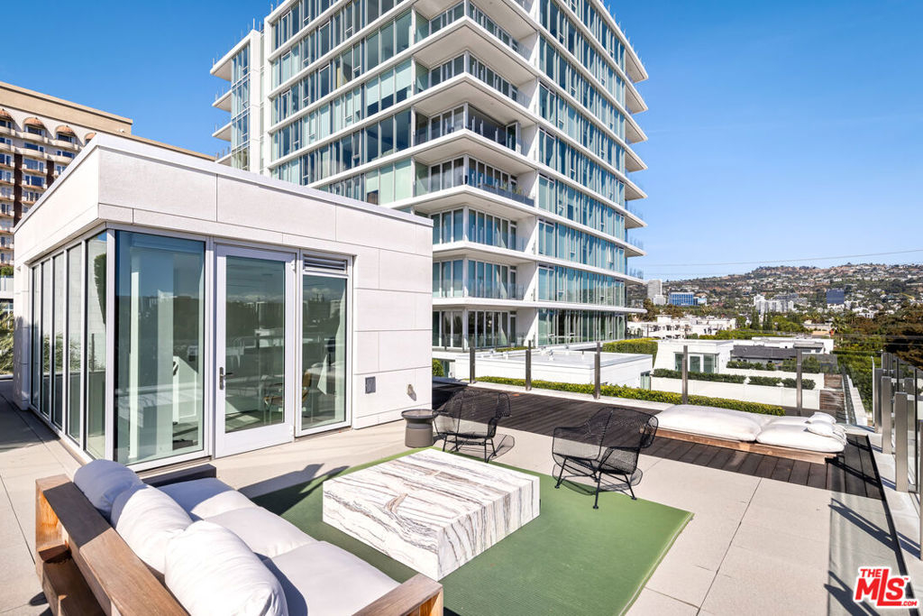 Residence 208 at the Four Seasons Private Residences Los Angeles presents a rare opportunity to own one of the largest and most highly customized townhomes in this exclusive 12-story tower. Offering two bedrooms, four bathrooms, and spanning three levels with both private elevator and staircase access, this home blends modern elegance with the legendary service of the Four Seasons. The main floor features a spacious open-concept great room, combining living, dining, and a chef's kitchen fitted with Gaggenau appliances and sleek custom cabinetry. A powder room completes this level. Upstairs, two expansive bedroom suites are enhanced with custom-designed closets and spa-inspired bathrooms finished in timeless Carrera marble. The crown jewel of this residence is its extraordinary 1,747 sq. ft. private wraparound rooftop terrace. Centrally positioned within the building, this one-of-a-kind outdoor living space is a true sanctuary, offering panoramic, bird's-eye views of the saltwater pool, cabanas, and entertaining areas below. Complete with its own powder room, the rooftop extends the living experience far beyond the interior, creating unmatched value and lifestyle appeal. This rare outdoor square footage is considered one of the most desirable features in the entire building. Residence 208 also includes significant owner upgrades, such as automatic window coverings throughout, designer recessed and decorative lighting, and custom closet systems in both bedrooms. These enhancements add sophistication, convenience, and long-term value to an already exceptional home. The Four Seasons Private Residences Los Angeles is an exclusive collection of just 59 homes, all of which are fully sold out. Only a select few residences are now available on the resale market, underscoring the rarity of this offering. Interiors by acclaimed designer Martyn Lawrence Bullard highlight California Modern design with abundant natural light, refined finishes, and an effortless connection between indoor and outdoor living. Residents enjoy access to an unparalleled array of amenities that redefine luxury condominium living: a private IMAX Theatre Palais and residents' lounge, a Harley Pasternak-designed Fitness Center, a resort-style saltwater pool with cabanas, and the exclusive in-house private dining room with a dedicated chef a unique HOA amenity unmatched anywhere else in Los Angeles. World-class concierge, housekeeping, and in-residence dining services further elevate the experience. Perfectly located at the crossroads of Beverly Hills and Los Angeles, the Residences are just moments from Beverly Hills' famed Golden Triangle, Robertson Boulevard, The Grove, LACMA, and the city's finest shopping, dining, and cultural destinations. With its expansive layout, Carrera marble bathrooms, significant upgrades, and one of the largest private rooftops in the building uniquely positioned for breathtaking views over the pool and entertaining areas Residence 208 is more than a home. It is the pinnacle of Four Seasons living in Los Angeles, offering exclusivity, lifestyle, and value that cannot be duplicated.