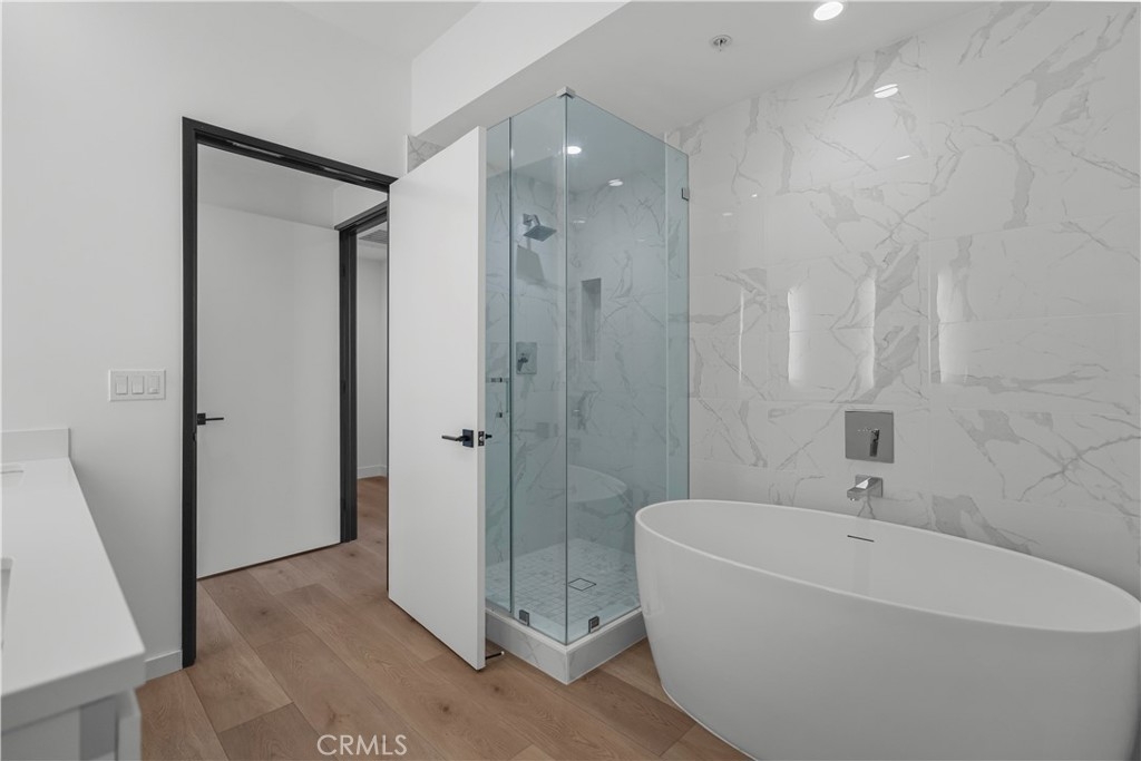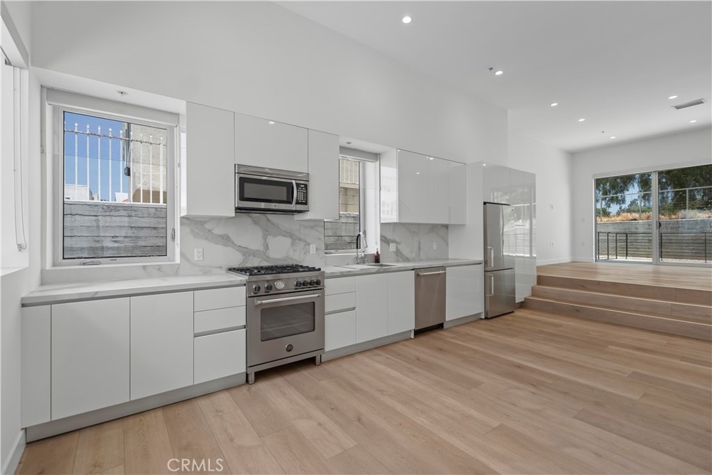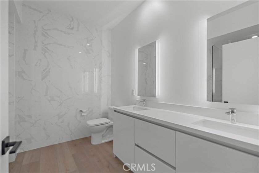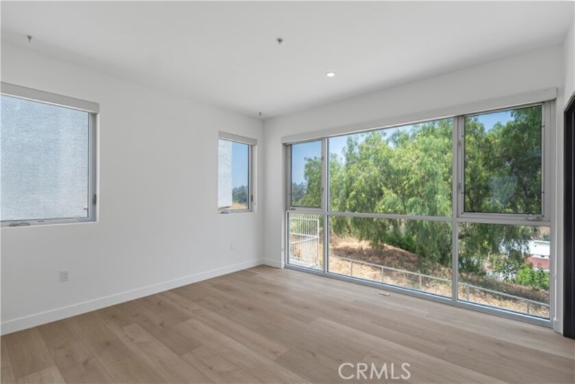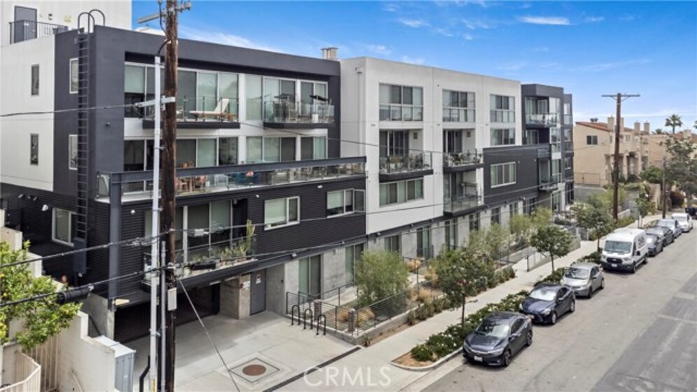 Welcome to Residence 318 at 957 FIG- a modern top-level, end-unit, two-story condominium built in 2021. This 2-bedroom, 2.5-bath home features a bright open-concept layout with a light-filled living area, large glass patio doors, and a seamless flow into the dining space and modern kitchen. Both bedrooms are located upstairs, each with a walk-in closet and a private en-suite bathroom. The upper level offers open skyline views, adding a sense of space and natural light. The secure-access community consists of a limited number of residences and includes two-car parking with EV charging access, a fitness room, an outdoor BBQ area, a locked mailroom, and on-site trash and recycling facilities. Tucked into a quiet hillside pocket, yet just minutes from all the action, the property is less than 5 minutes from Crypto.com Arena, Dodger Stadium, and the vibrant energy of Downtown LA!